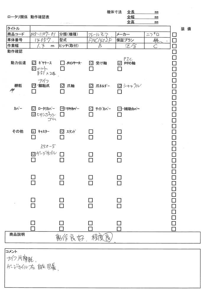 | 機種名 | 作業機 | 商品コード | 025-1107-01 |