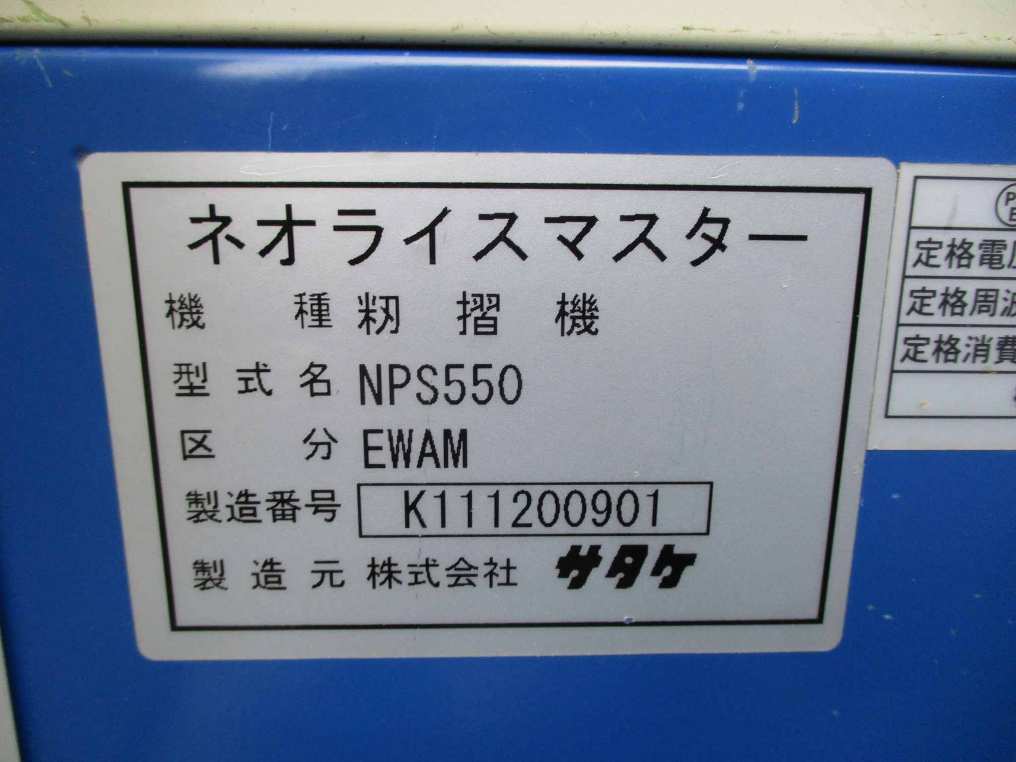 サタケ 籾摺機 NPS550EWAM