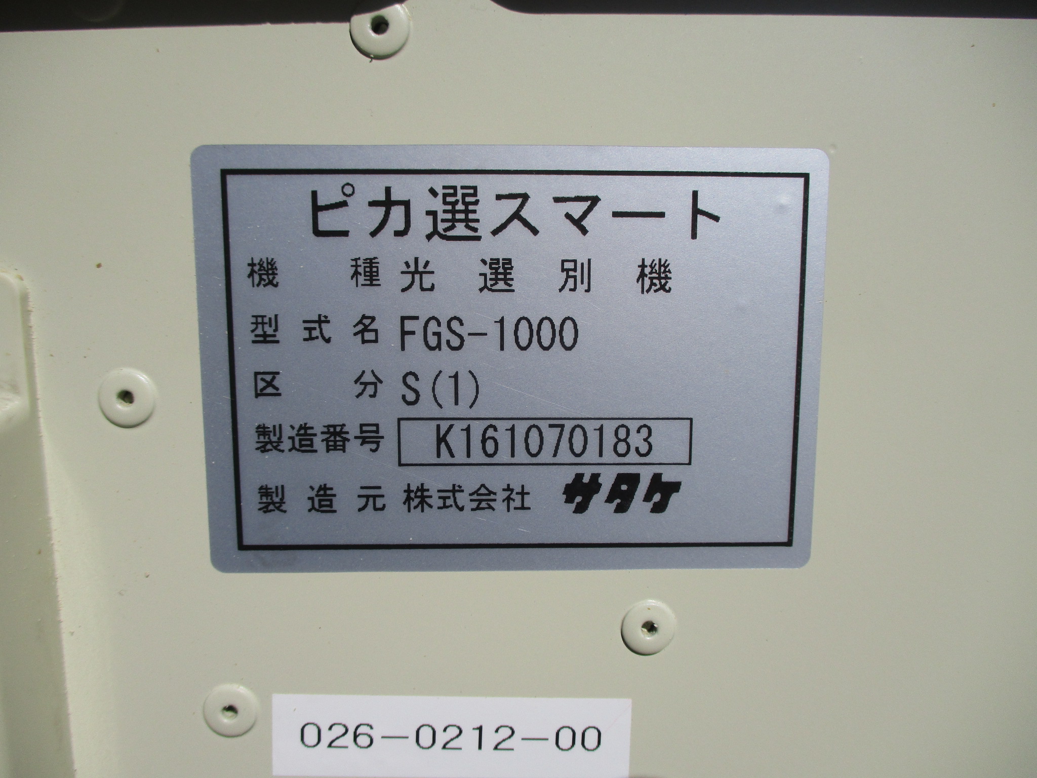 サタケ 色彩選別機 FGS1000S