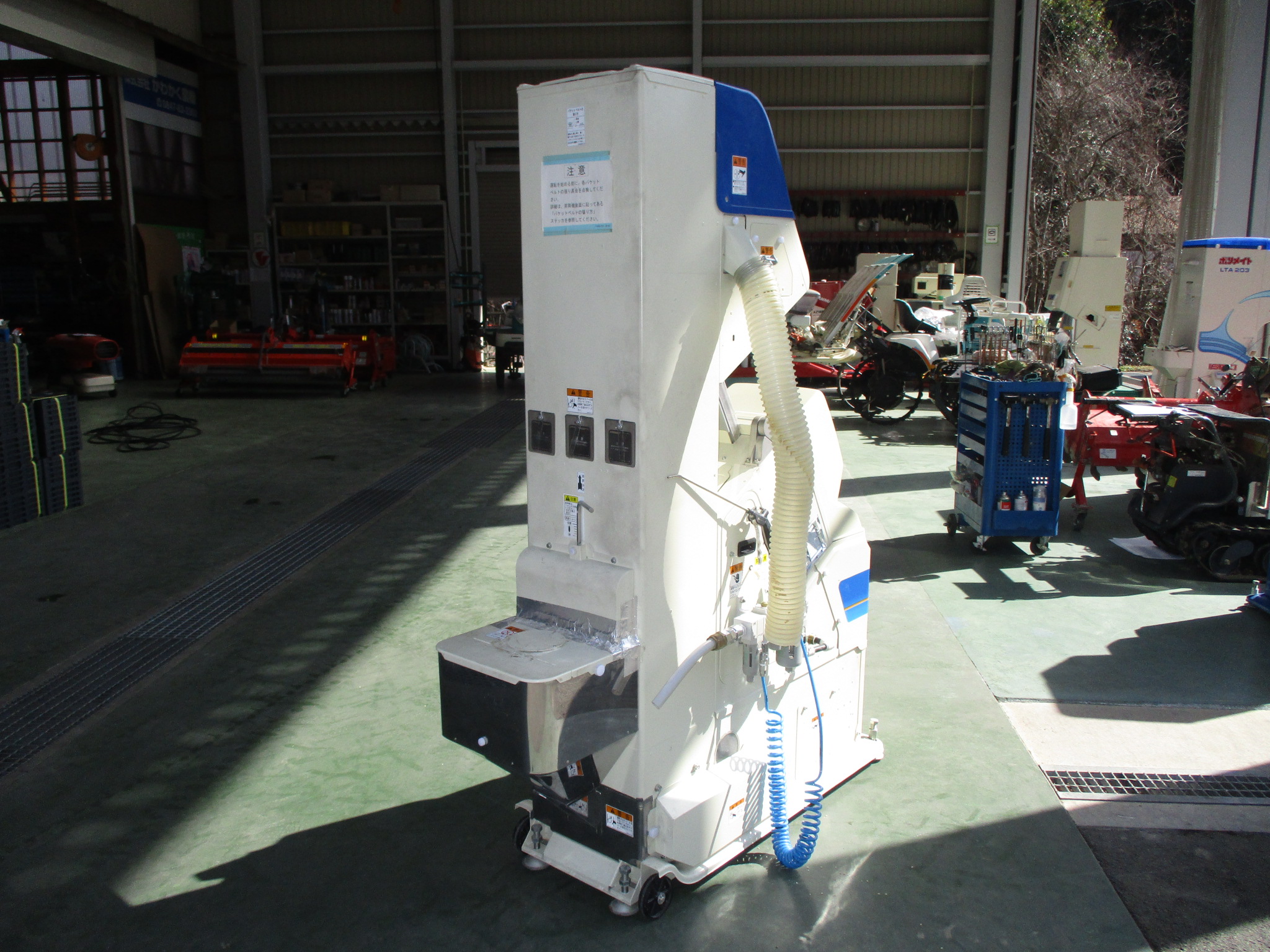 ラインへの組み込みもできますので、3インチあたりの籾摺機に使用可能です。