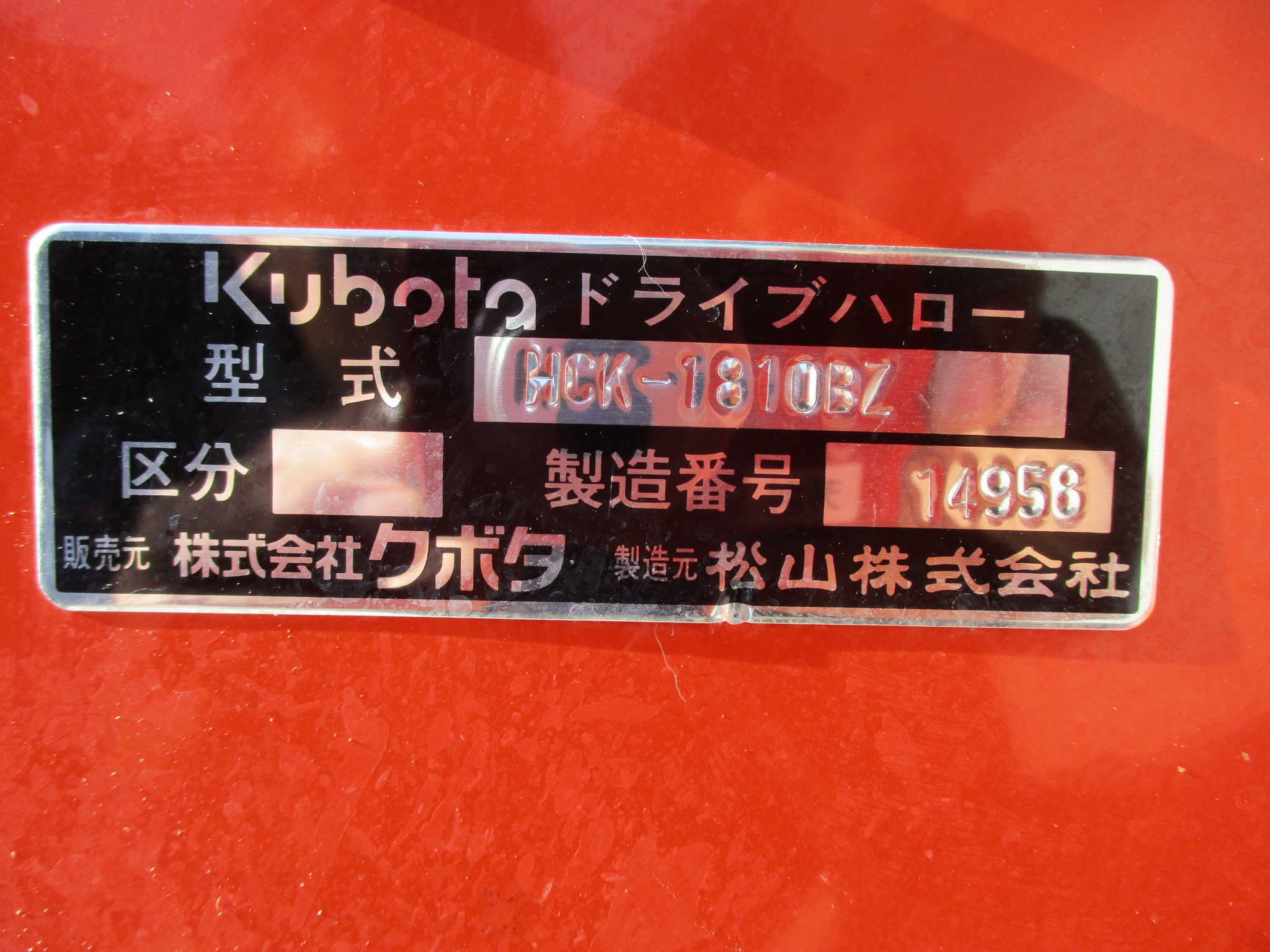 クボタのKB型、JB型、NB型のワンタッチヒッチ付きトラクターにポン付けできるタイプのハローです。