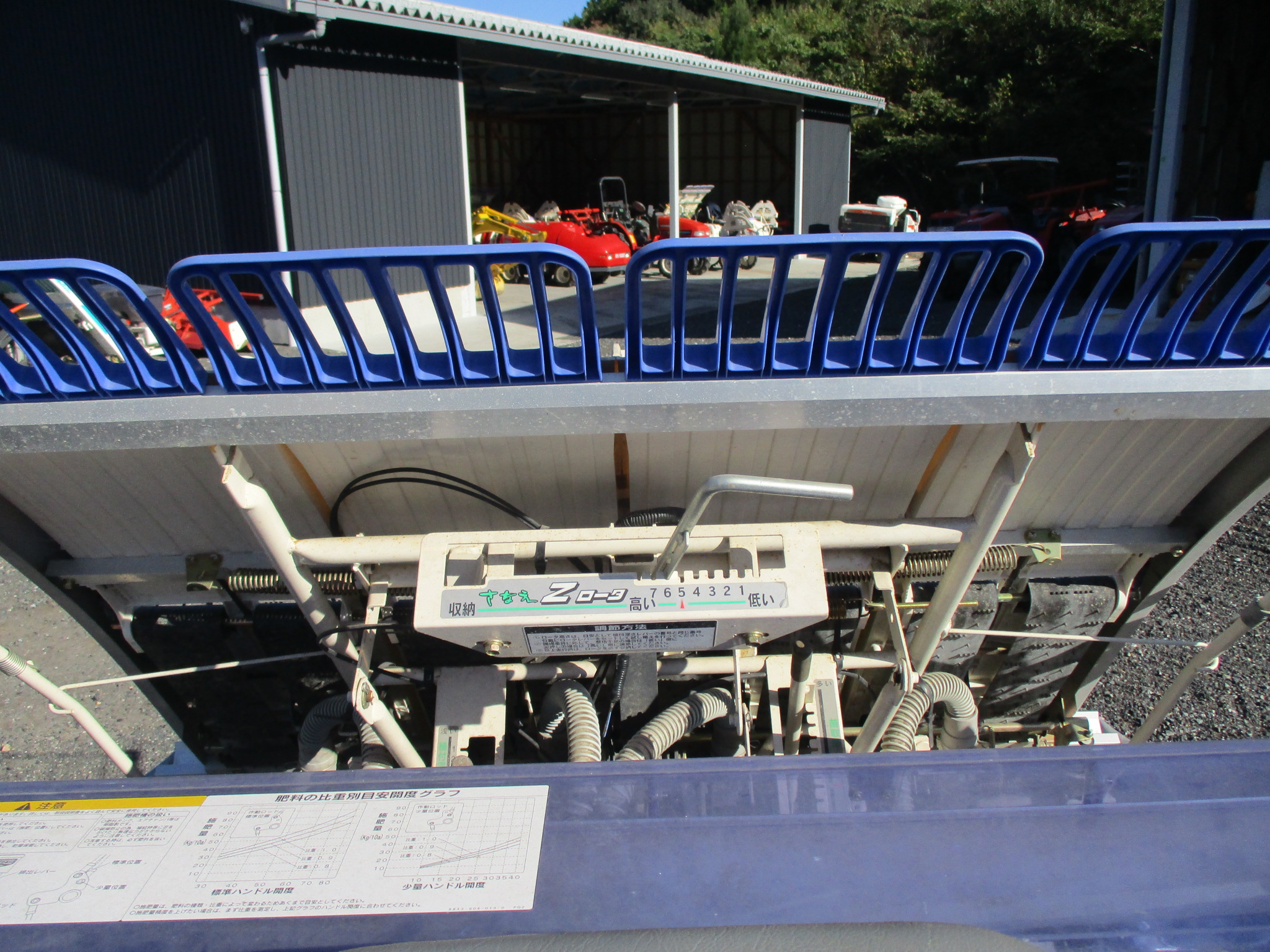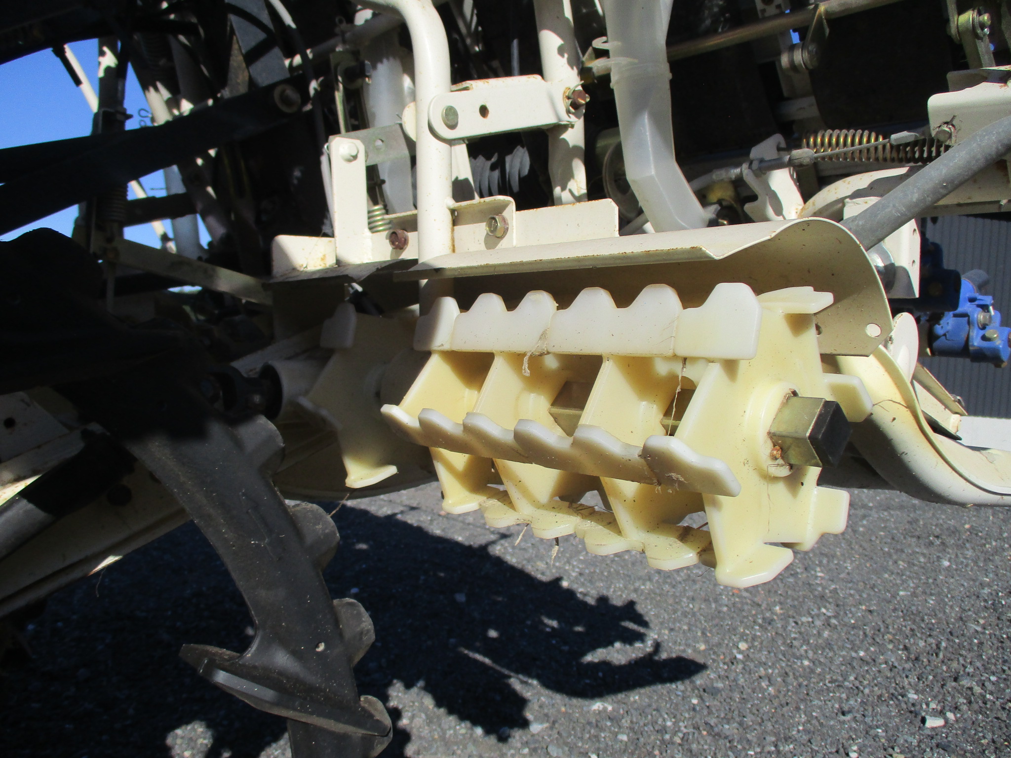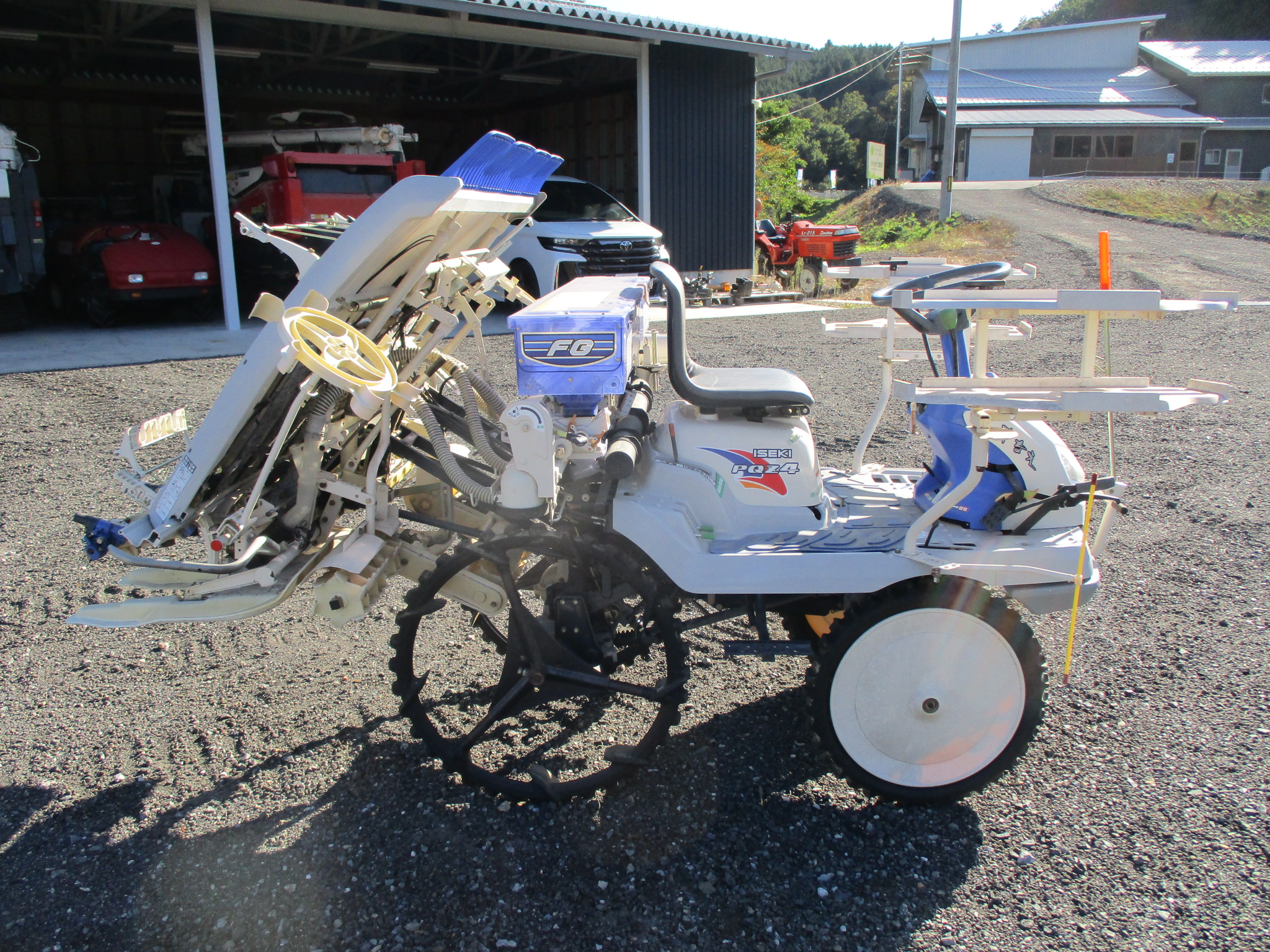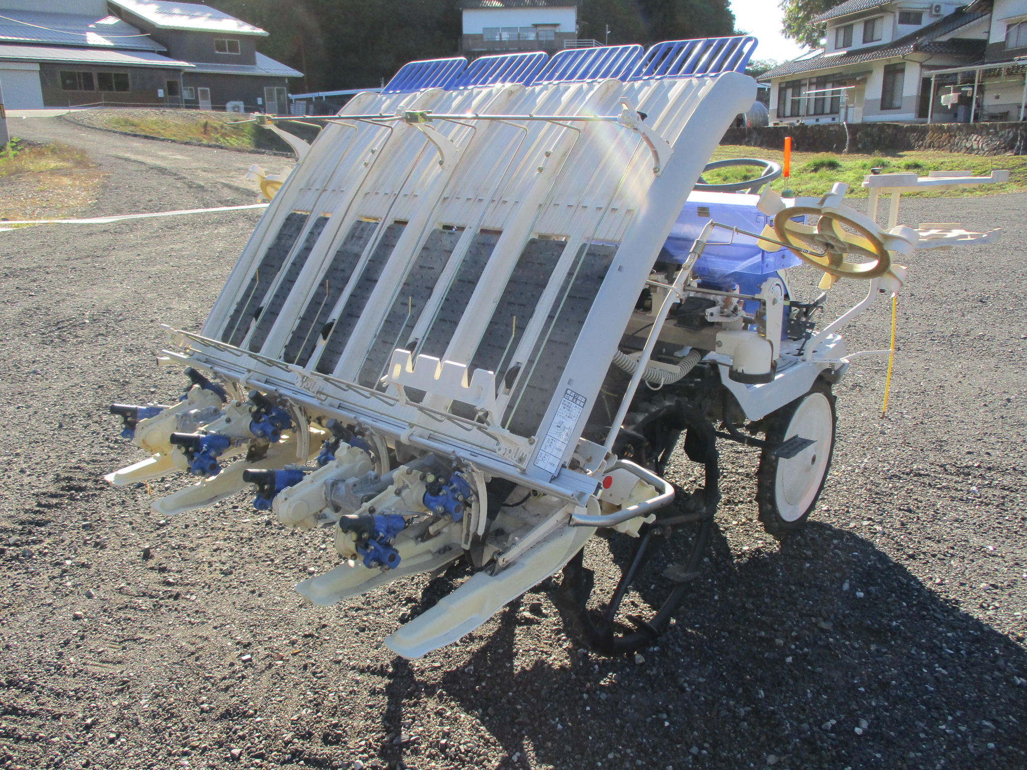 施肥、枕地ローターが付いた4条植の田植機です。