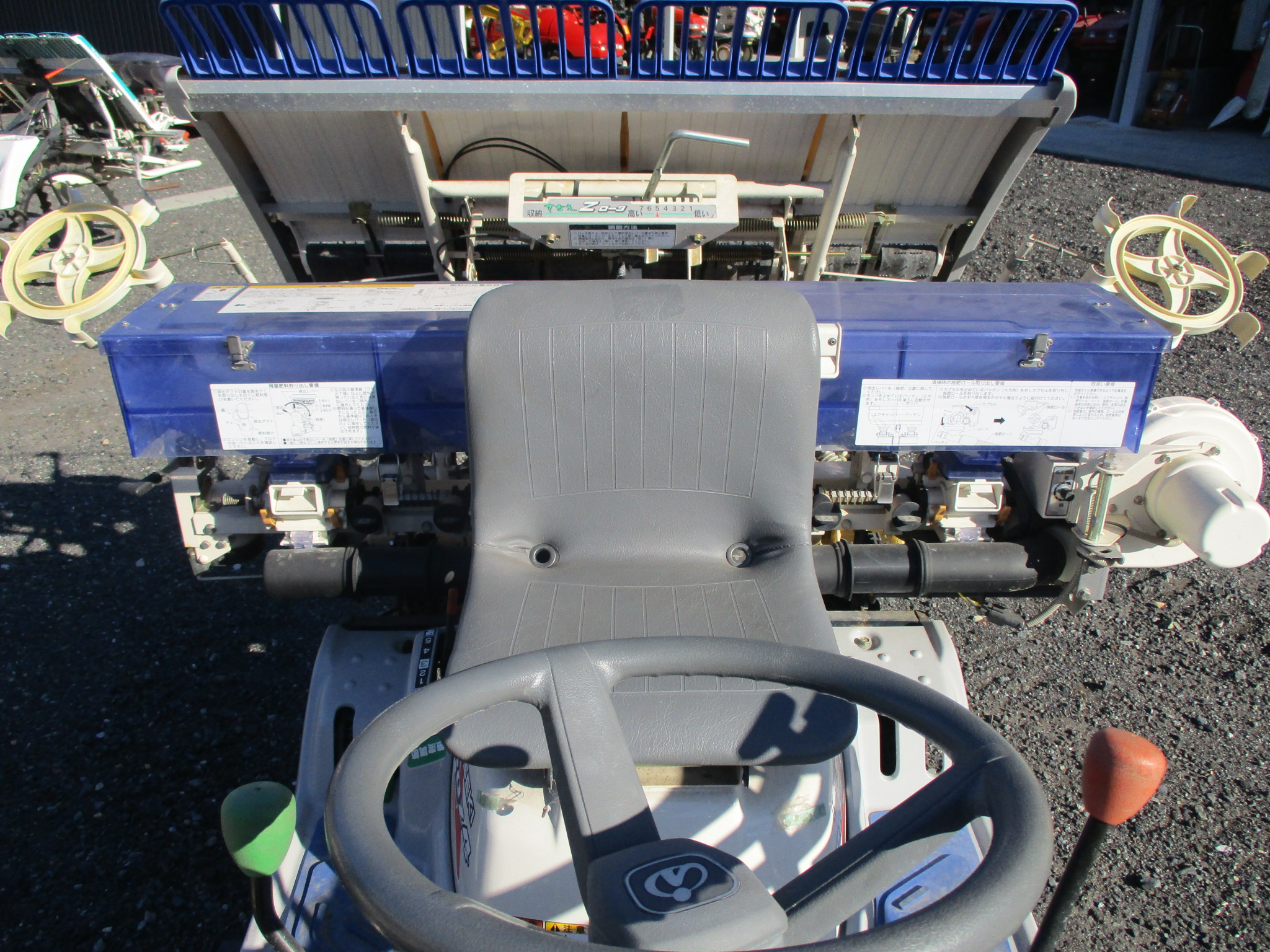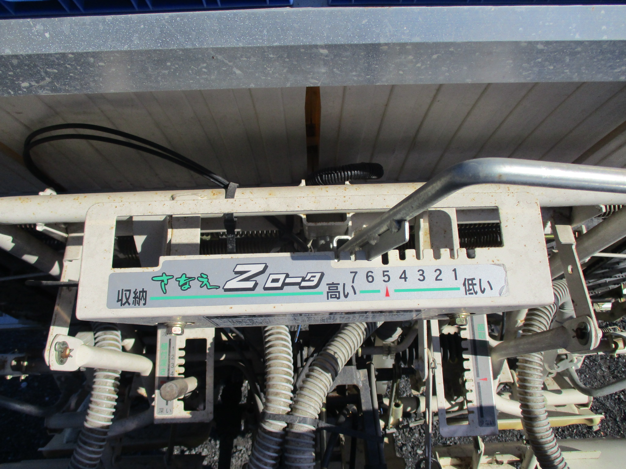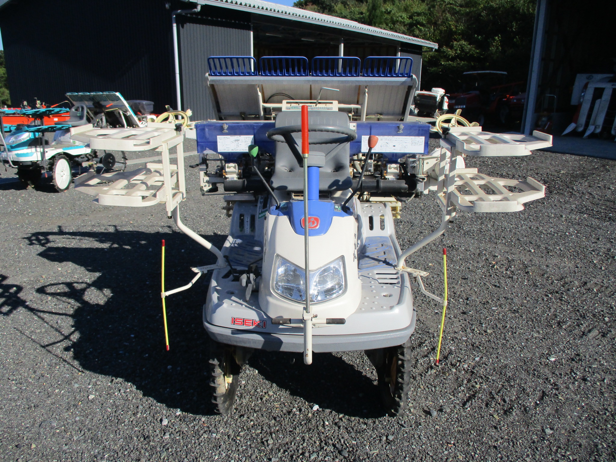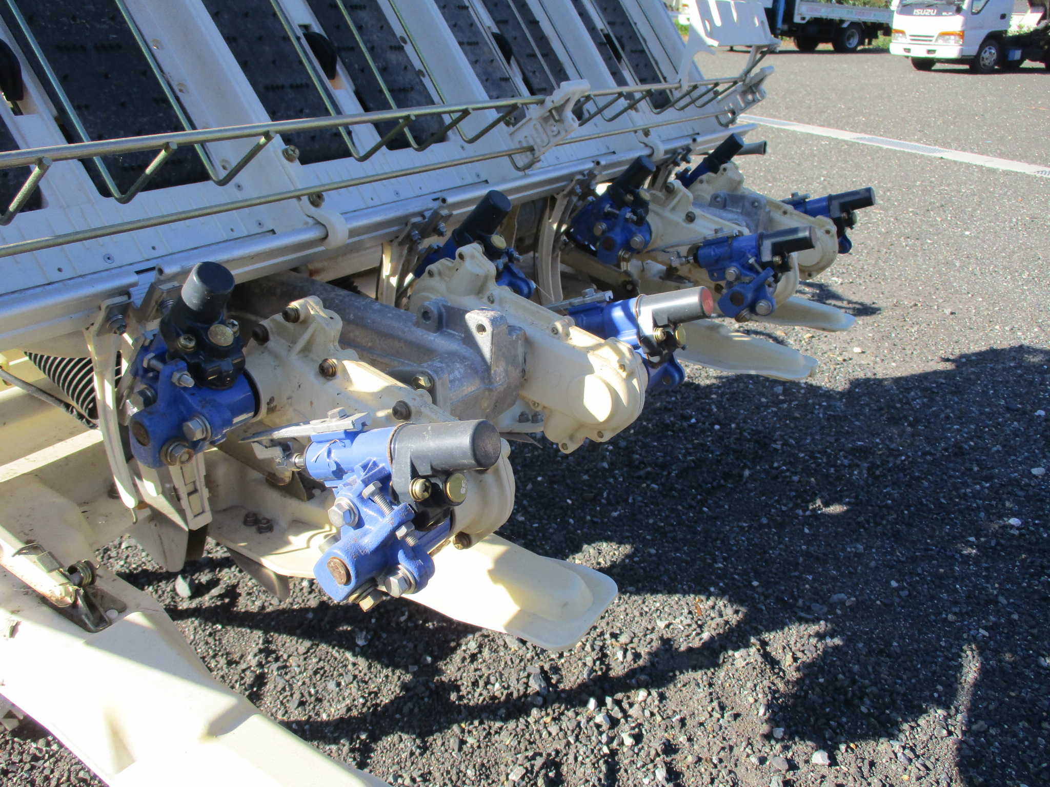 施肥、枕地ローターが付いた4条植の田植機です。