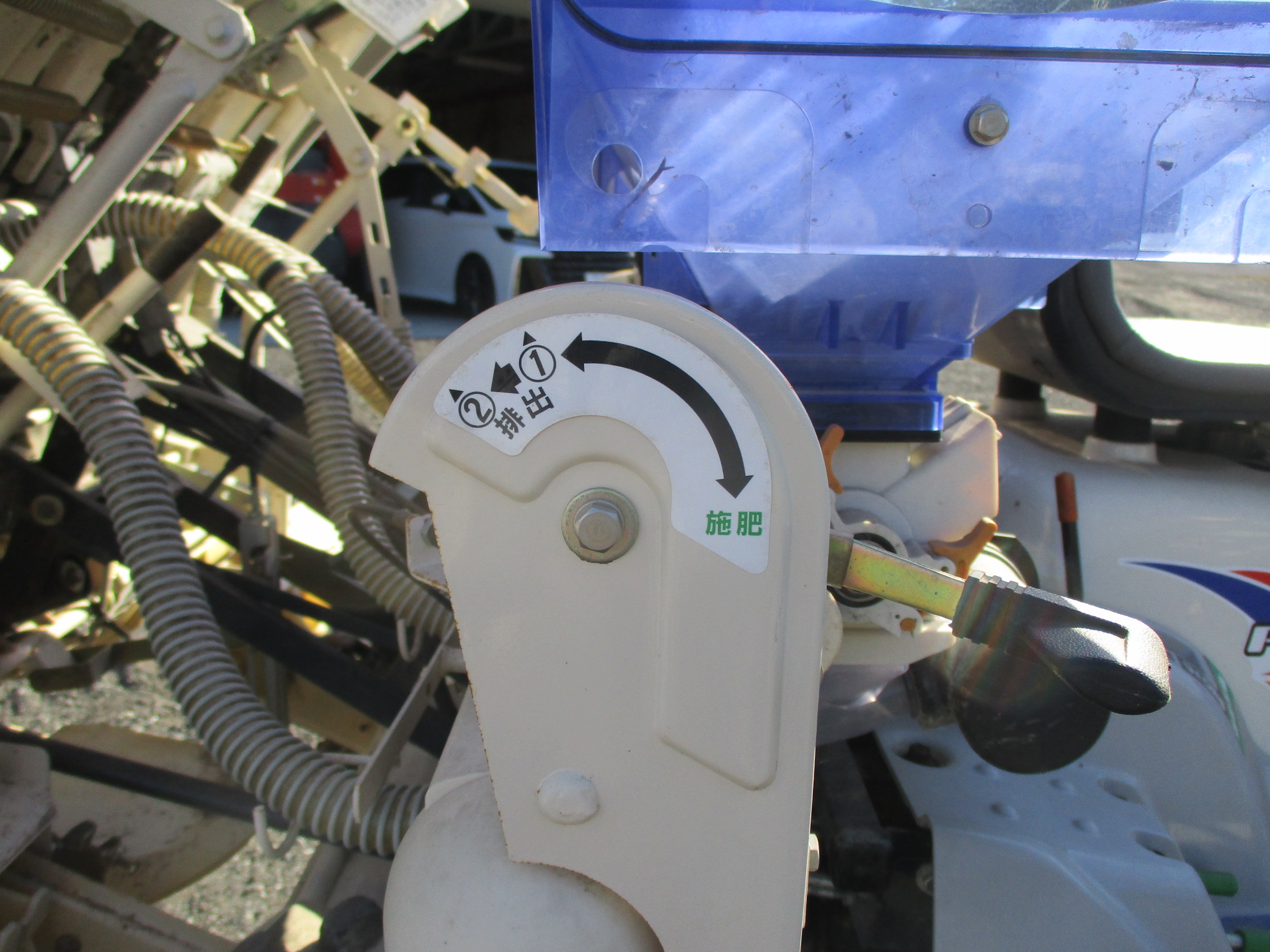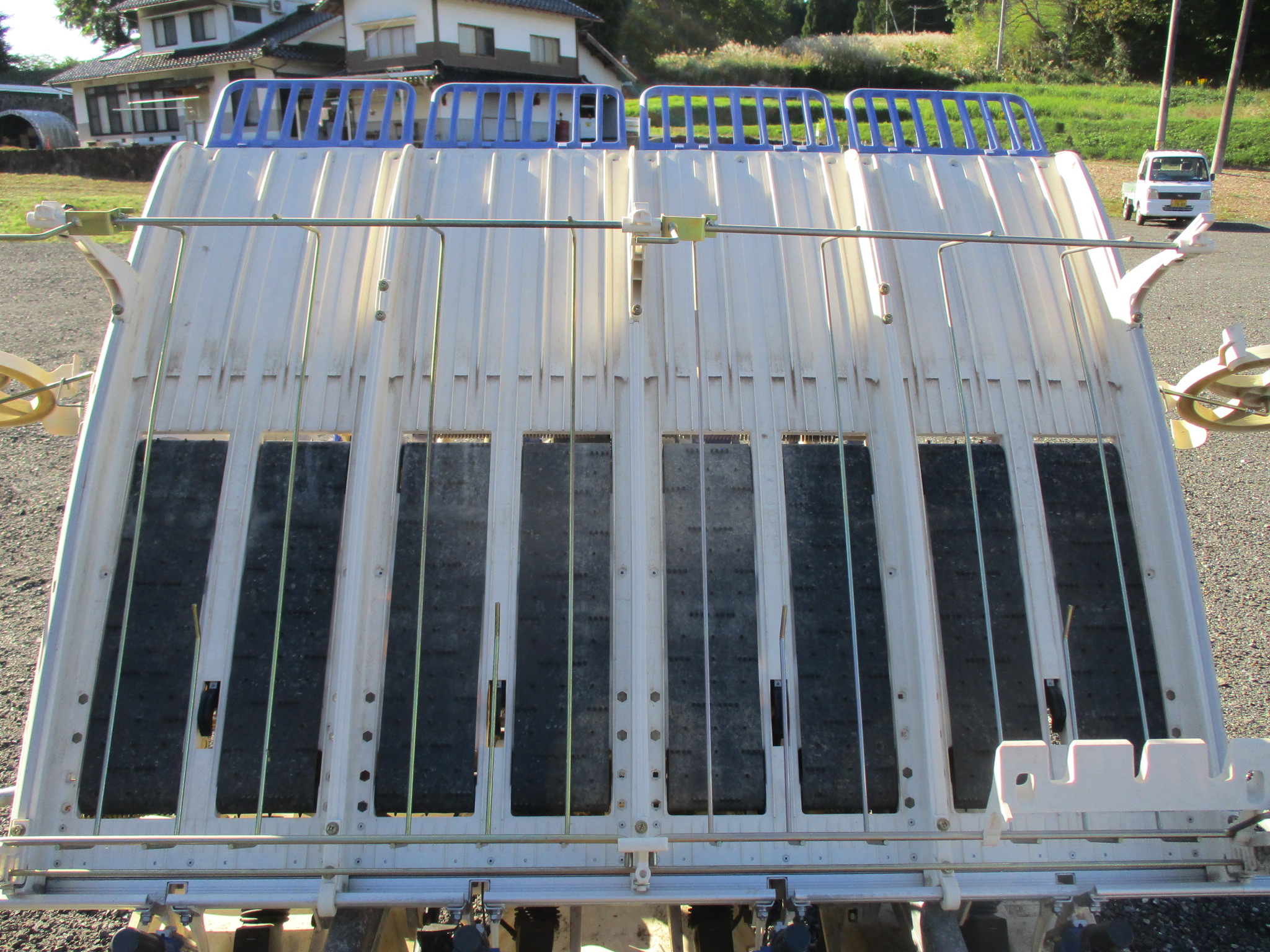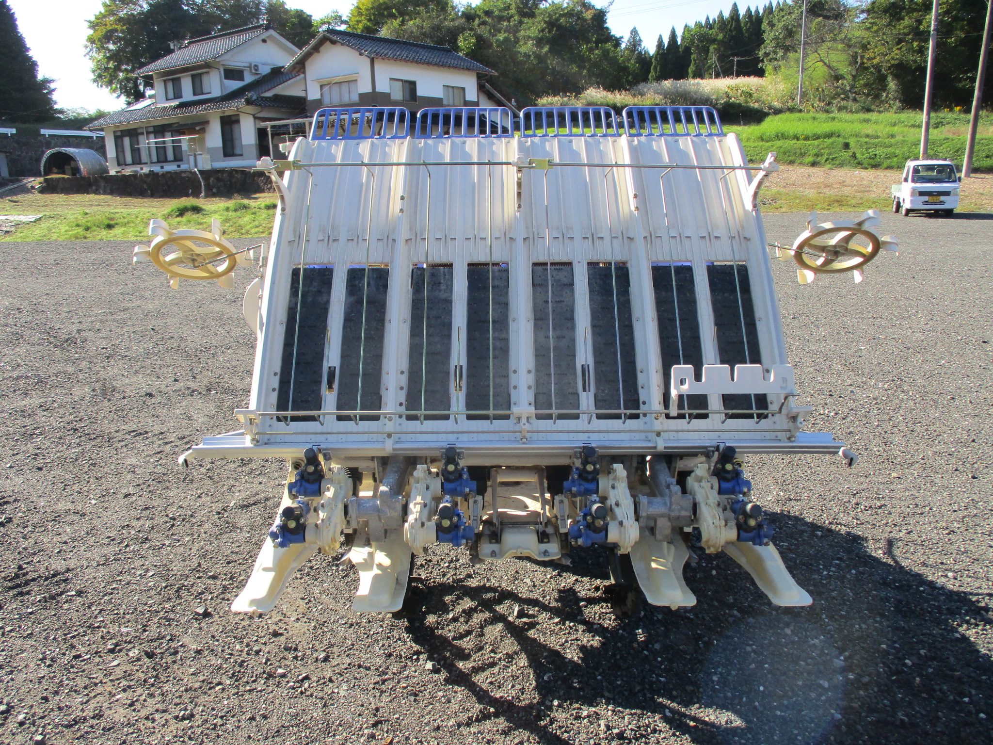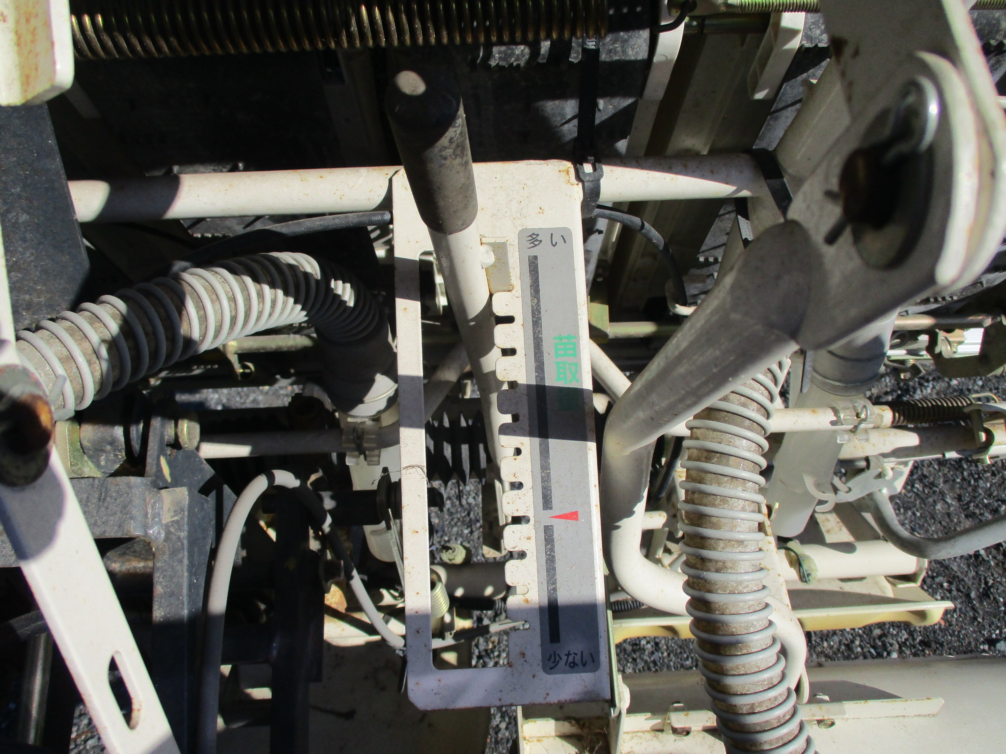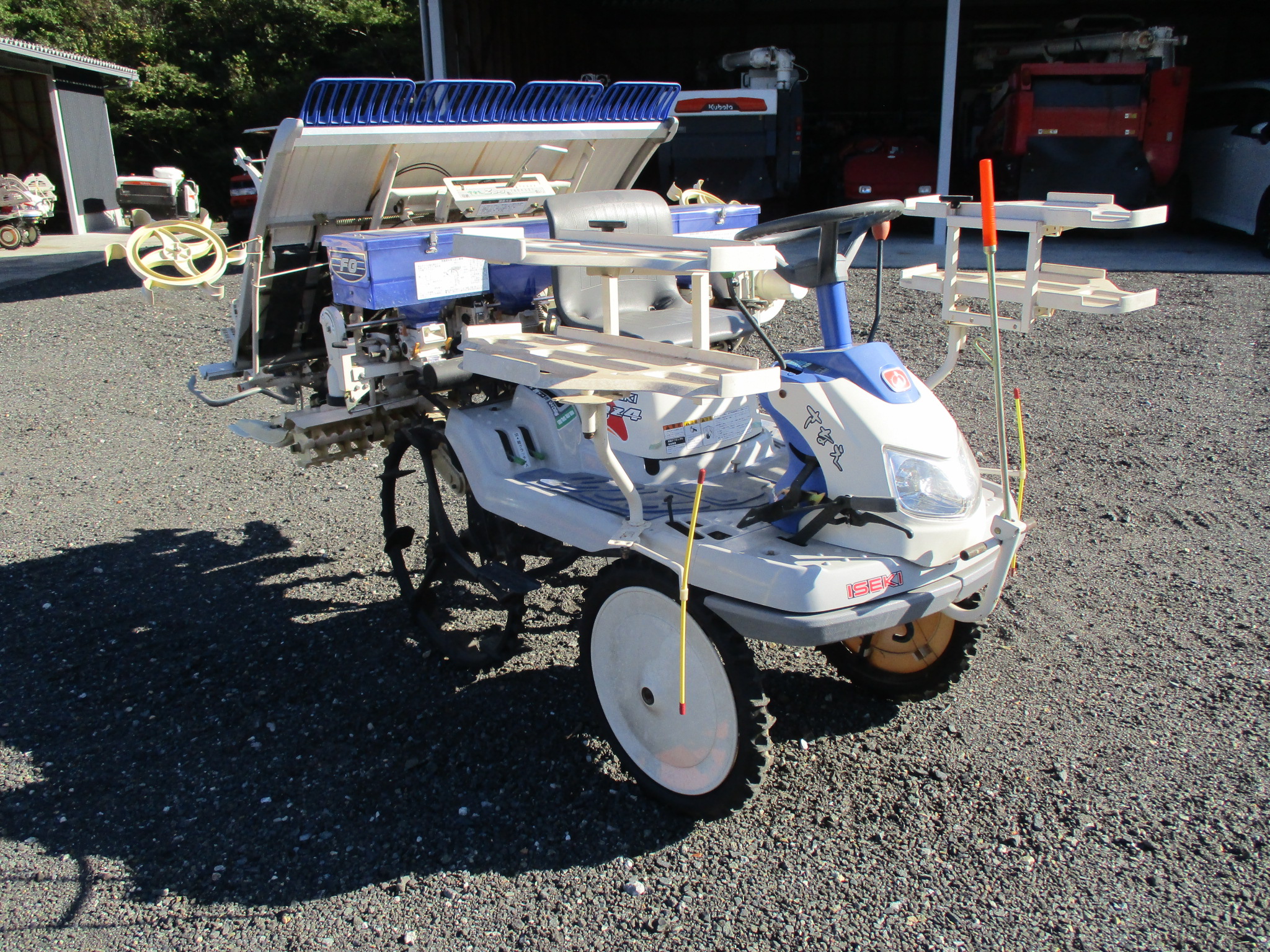 施肥、枕地ローターが付いた4条植の田植機です。