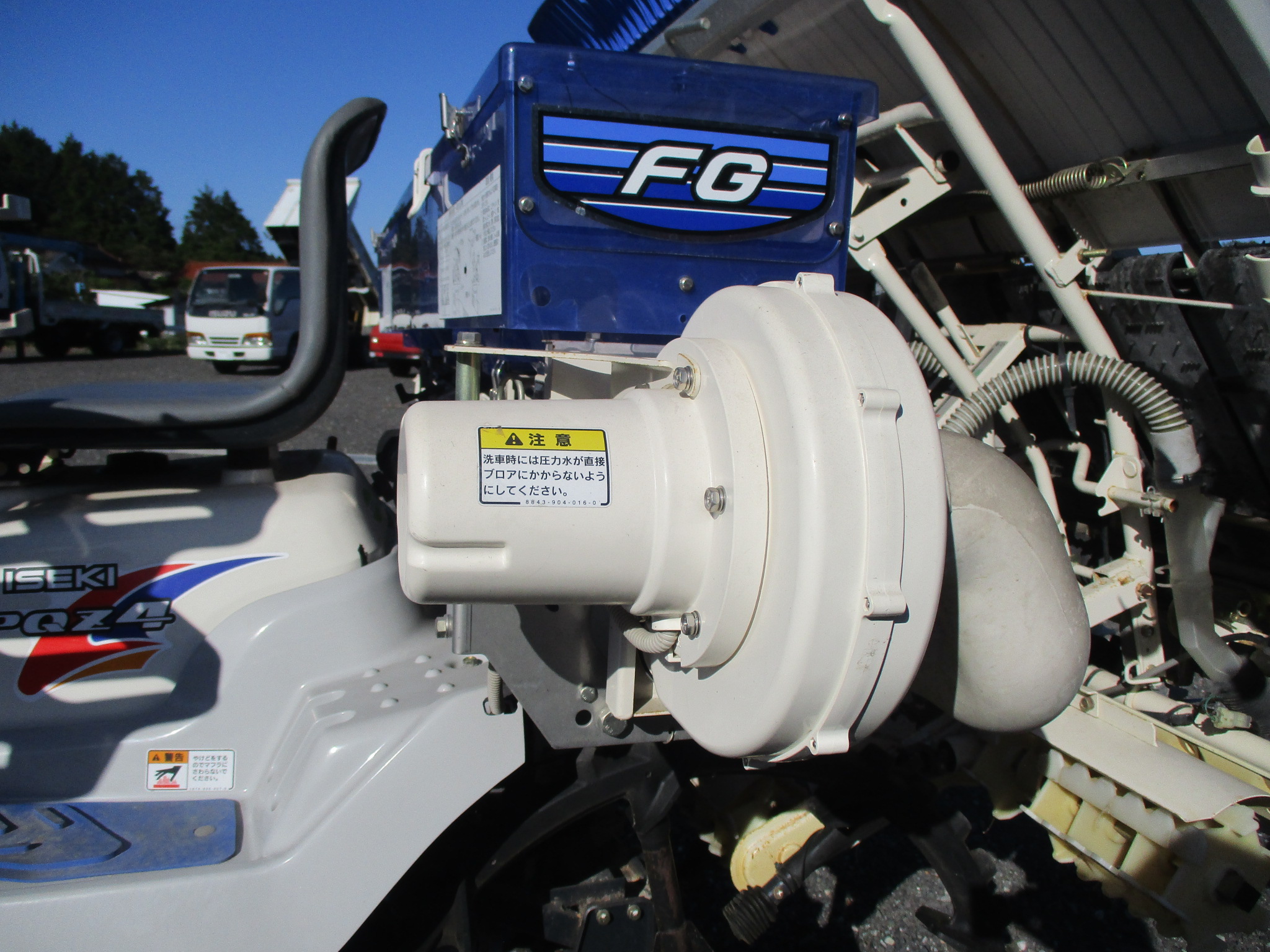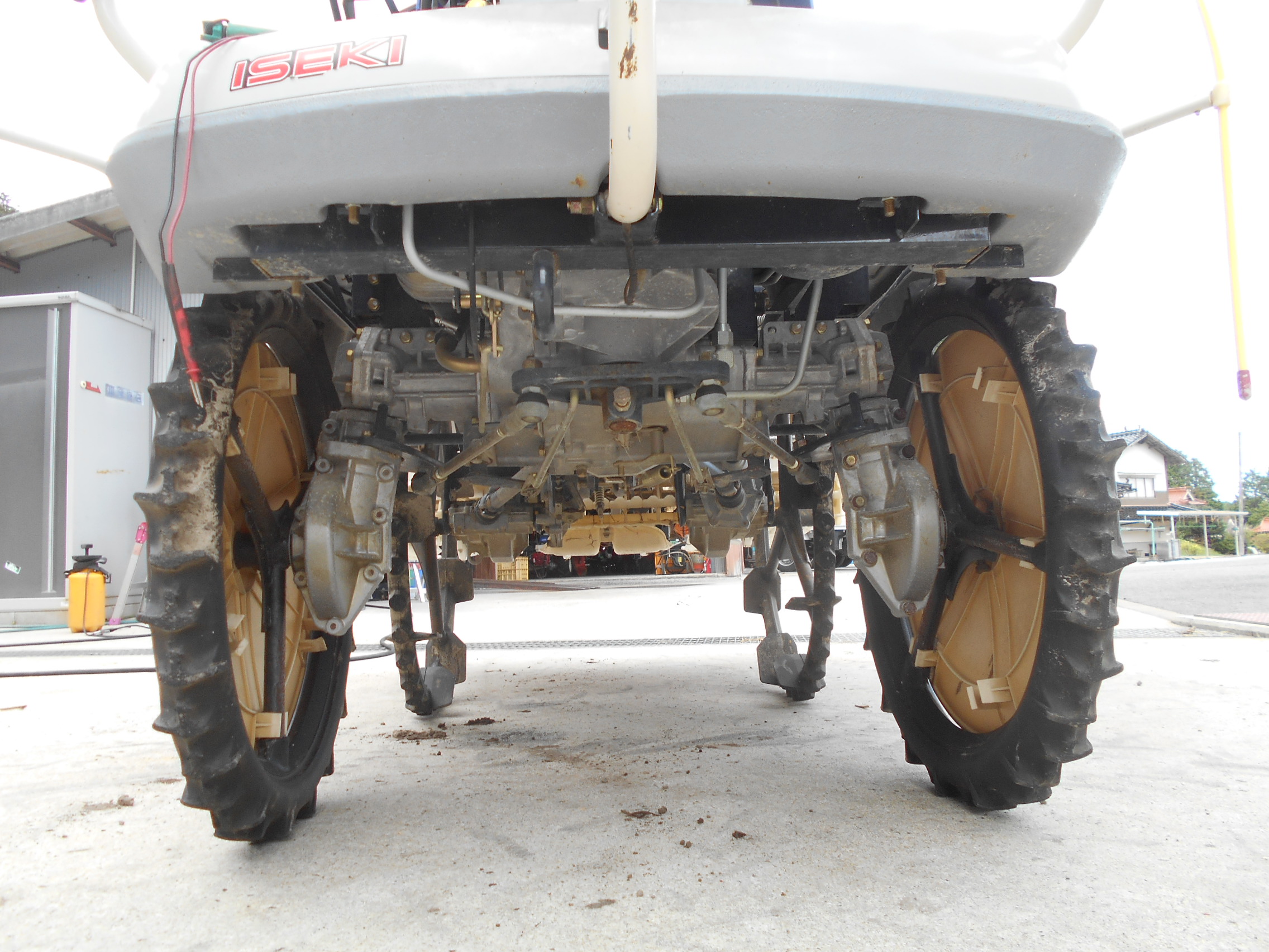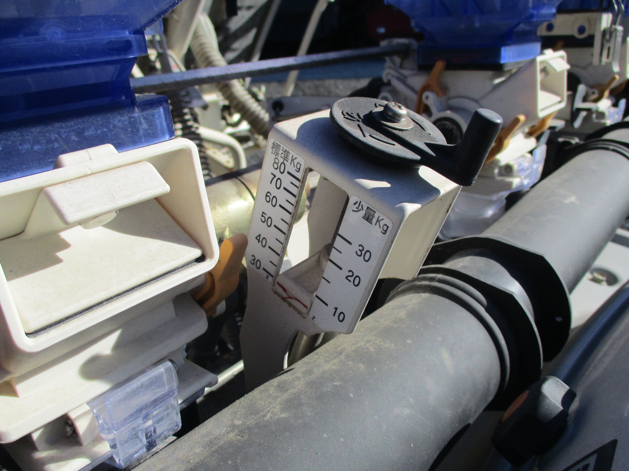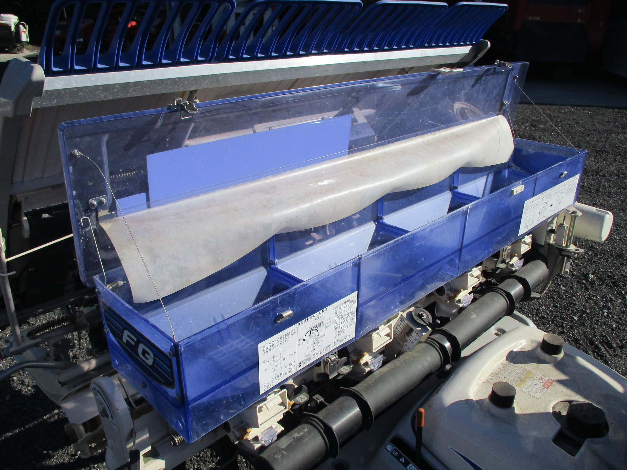 施肥、枕地ローターが付いた4条植の田植機です。