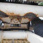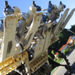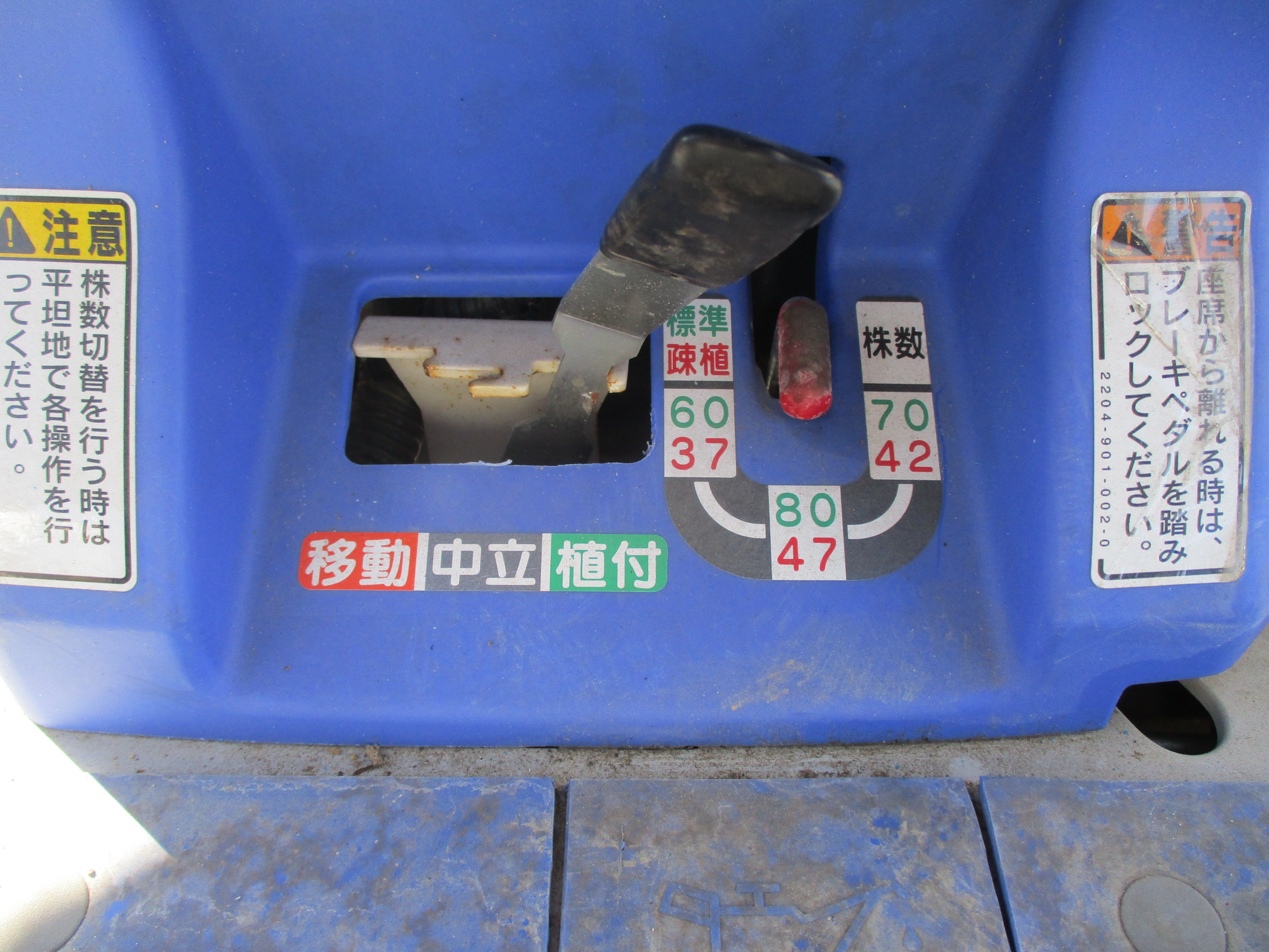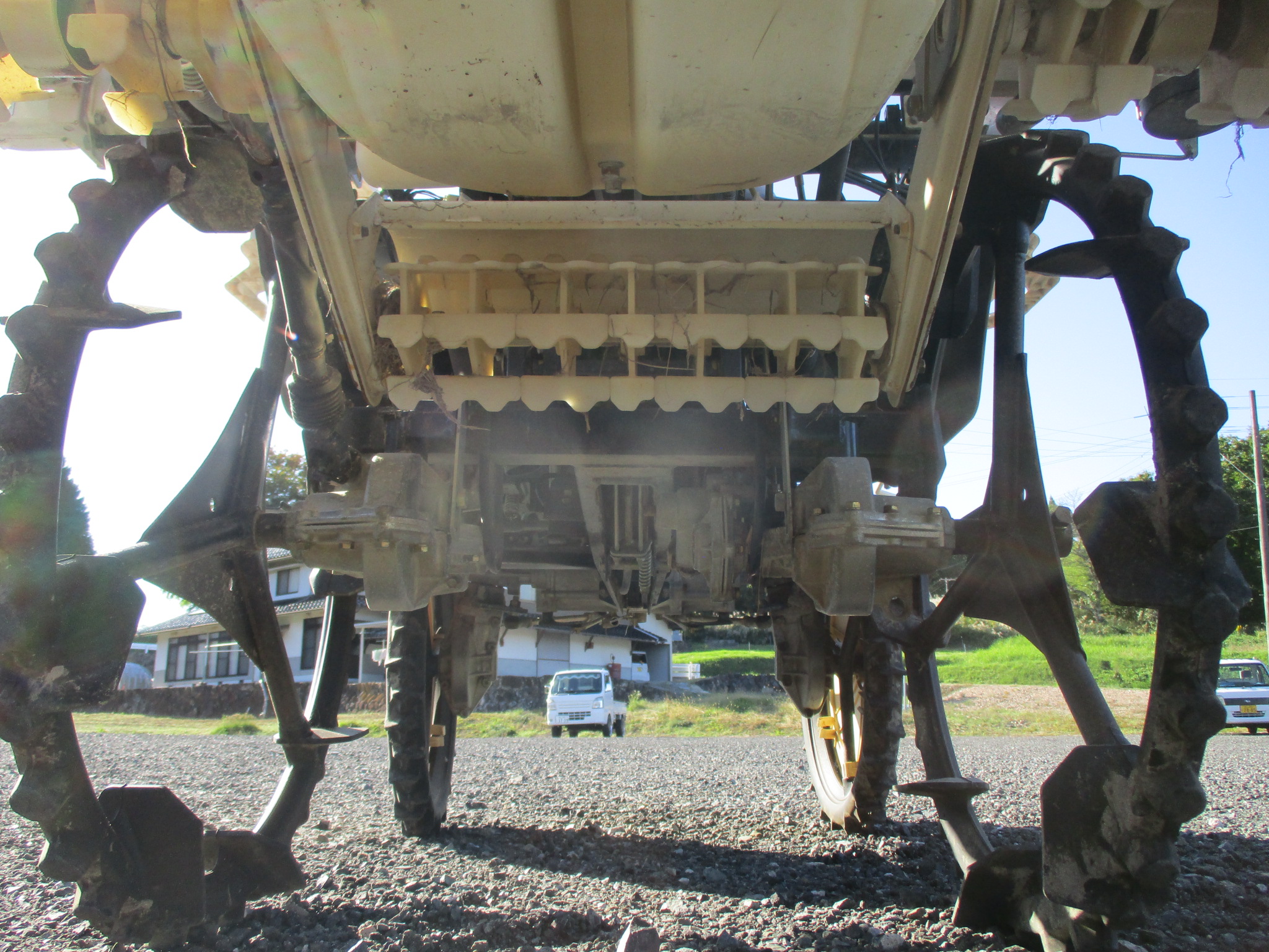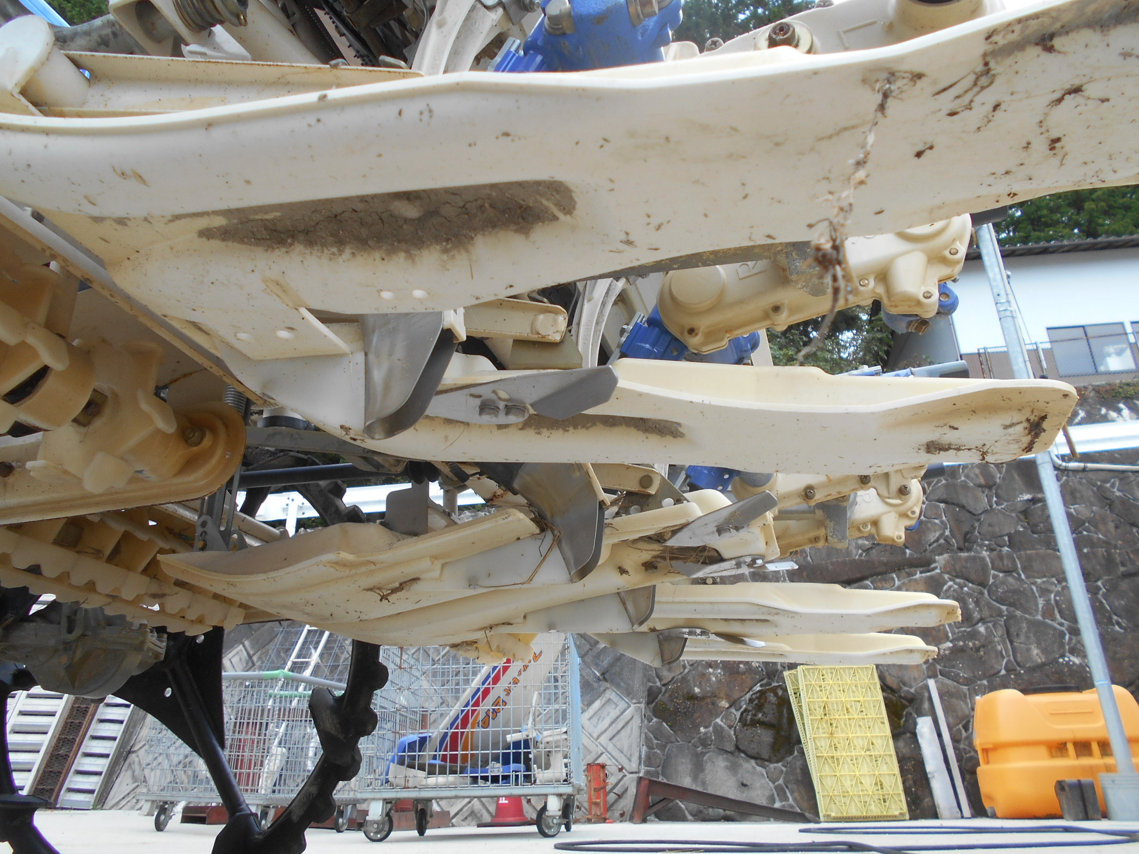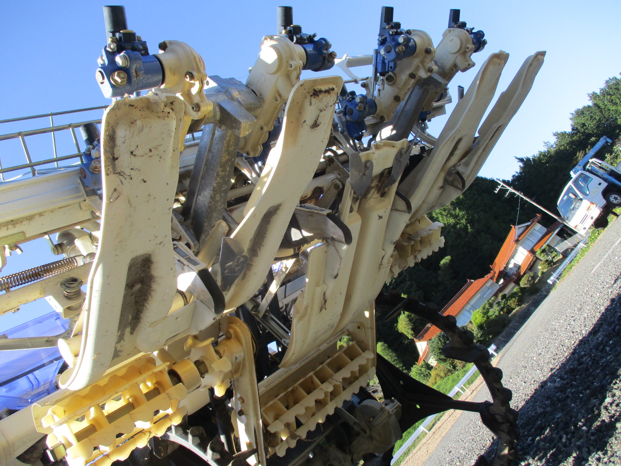 施肥、枕地ローターが付いた4条植の田植機です。