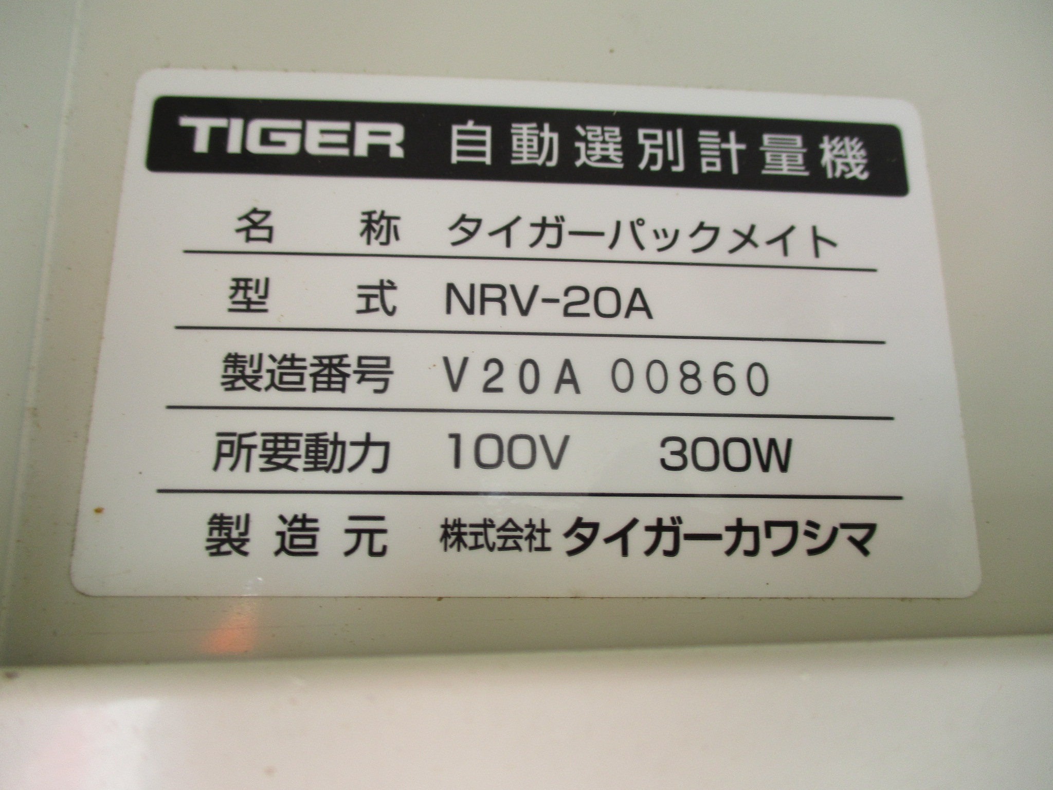 タイガーカワシマ 選別計量機 NRV20A